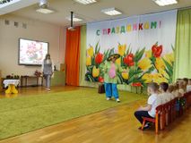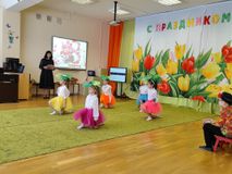 Наступила долгожданная весна. А в начале марта мы отмечаем самый весенний, самый нежный и самый красивый праздник 8 Марта. В детском саду прошли мероприятия, посвященные Международному женскому дню. Ребятишки постарались удивить и порадовать своих мамочек и бабушек, подготовили для них праздничный концерт. Ведь выступление на празднике в детском саду – лучший подарок, который мамы могут получить от своих детей. Трогательными стихами и песнями, задорными играми, завораживающими танцами воспитанники искренне признавались в любви к своим мамам и бабушкам. Вместе с детьми на празднике веселились и сказочные персонажи. Сюрпризным моментом были подарки, сделанные руками самих детей.