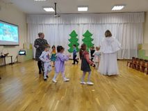 У детей младшего дошкольного возраста прошло развлечение «Зимушка-зима». Дети с большим удовольствием принимали участие в этом мероприятии: они танцевали, пели песни, читали стихи, отгадывали загадки и играли в хороводные игры. В гости к ребятам пришли сама красавица Зима и её снежный друг Снеговик.