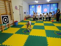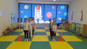 В преддверии Дня космонавтики для детей старшего дошкольного возраста провели физкультурное развлечение «Ждут нас быстрые ракеты». В спортивном зале ребят ждали веселые эстафеты, соревнования и игры.