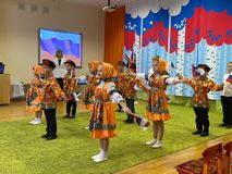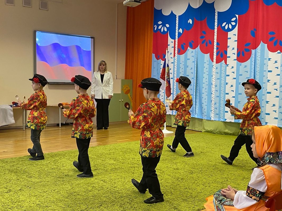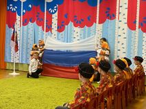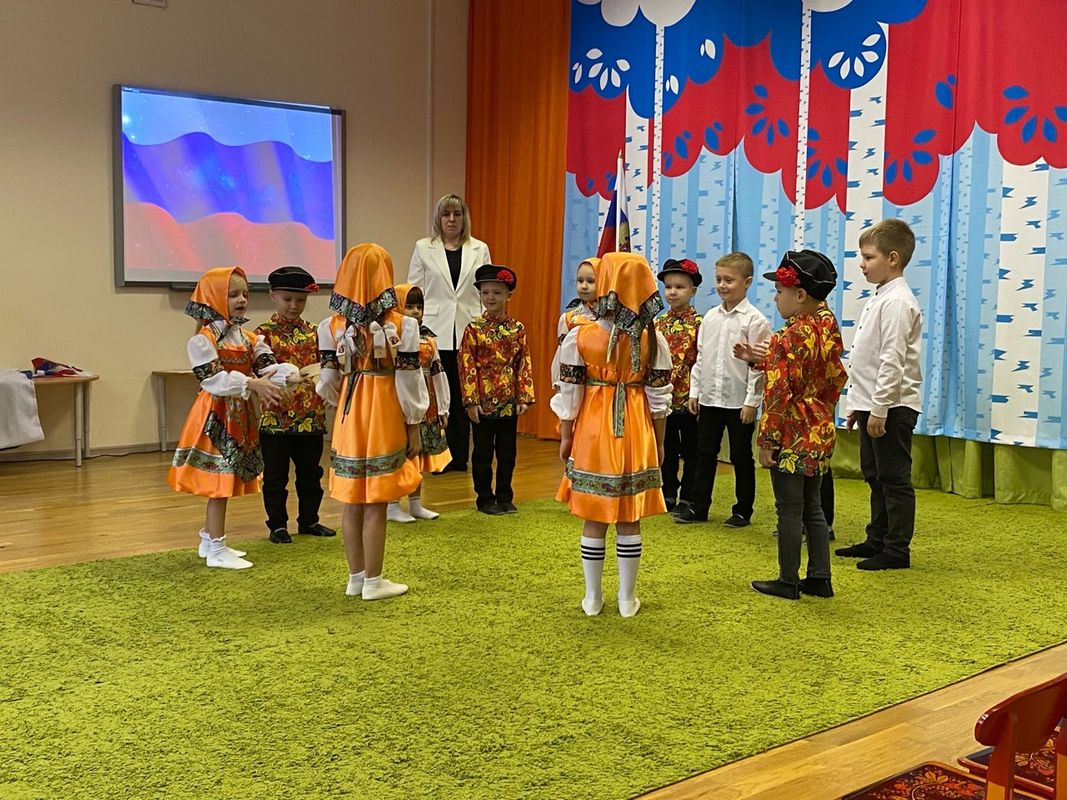 В преддверии Дня народного единства в детском саду прошел утренник "Мы Россияне!". Дети торжественно подняли флаг, станцевали с флажками, исполнили танец с ложками. Они спели песни о России и прочитали стихи. Праздник прошел замечательно.